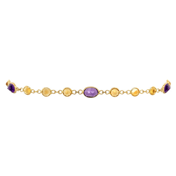 Gouden armband met amethist en citrien 19.5 cm 18 krt