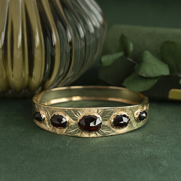 | Steensoort: | Granaat 1x 9 x 12 mm, 2x 7.2 x 9.4 mm en 2x 6.2 x 7.8 mm |