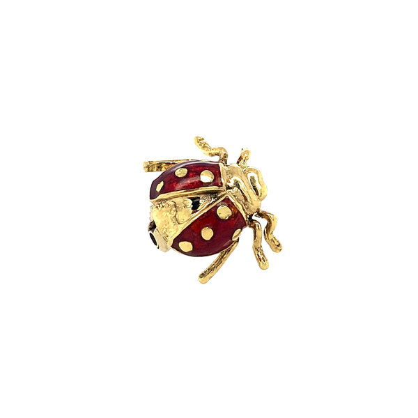 Gouden broche lieveheersbeestje met emaille 18 krt