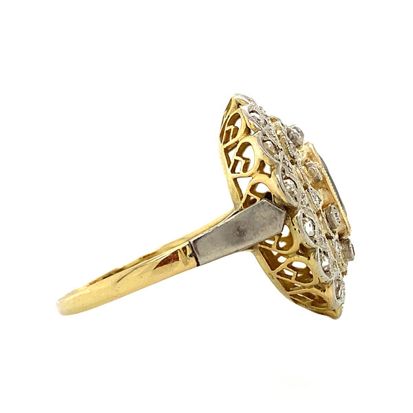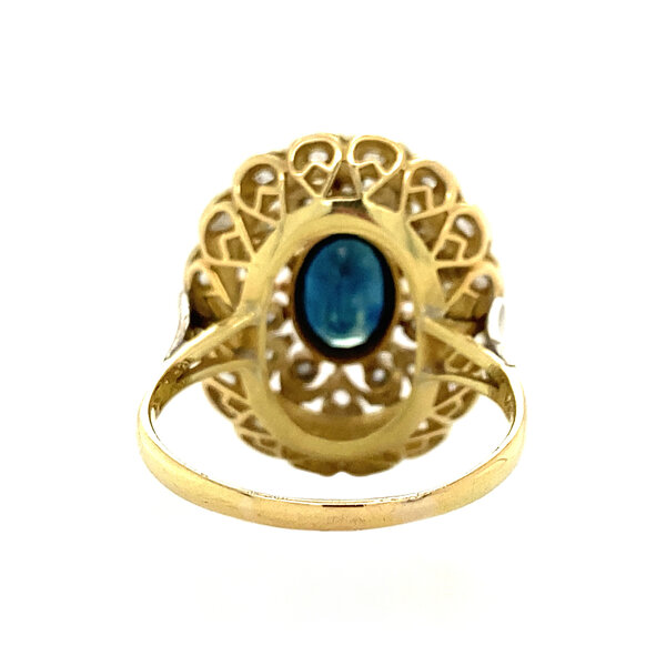 Gouden entourage ring met saffier en diamant 14 krt/850