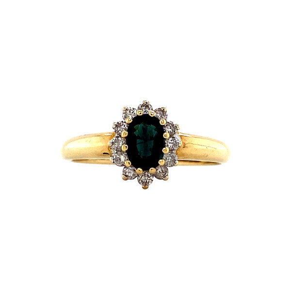 | Steensoort: | Natuurlijke groene saffier 6.1 x 4.2 mm en Diamant 12x 0.015 ct. G/SI2/I1 |
