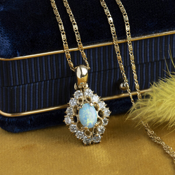 | Steensoort: | Blauwe Opaal 7 x 5 mm en Zirkonia 14x 2.3 mm |