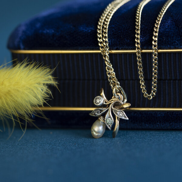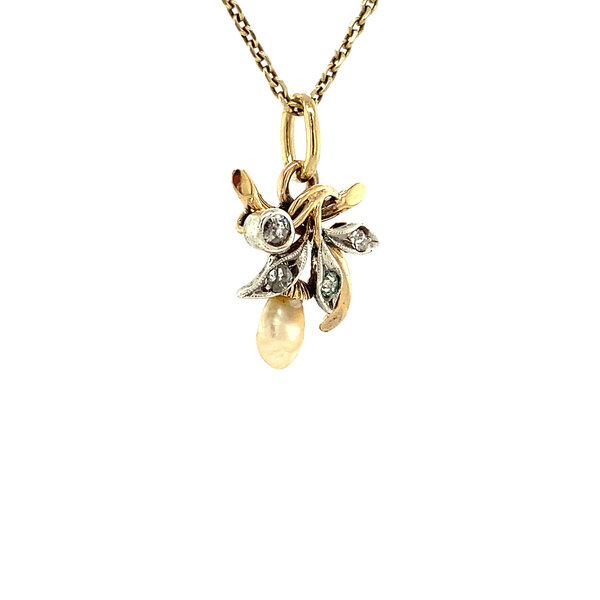 | Steensoort: | Parel 6.2 x 4.2 mm en Diamant 0.045 ct., 2x 0.035ct. en 0.025 ct. I/P3 |