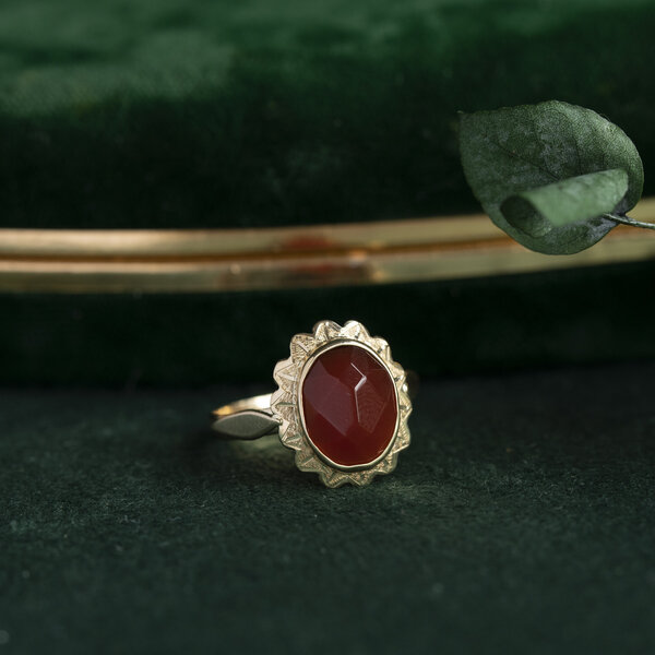 Gouden ring met carneool 14 krt