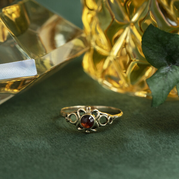 Gouden ring met granaat 14 krt
