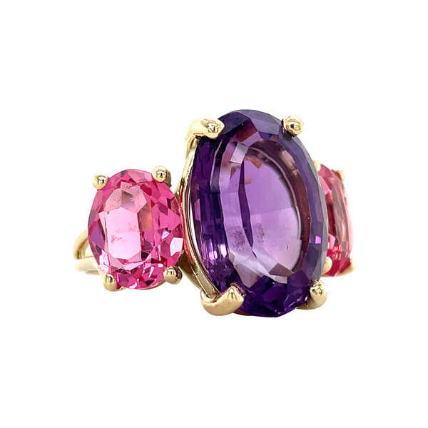 Steensoort: | Amethist 17.1 x 12 mm en Roze glas 2x 10 x 7.8 mm |