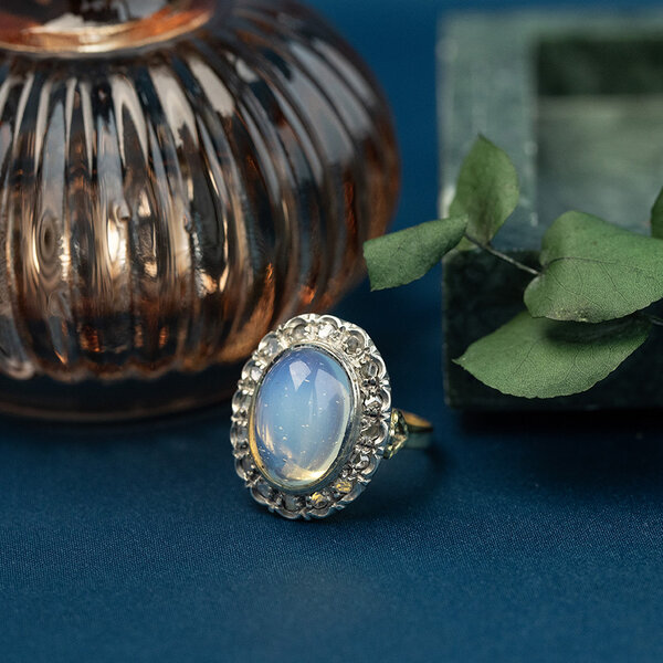 | Steensoort: | Glas 15.5 x 11.5 mm en Roosdiamant 16x 2 mm G/SI |