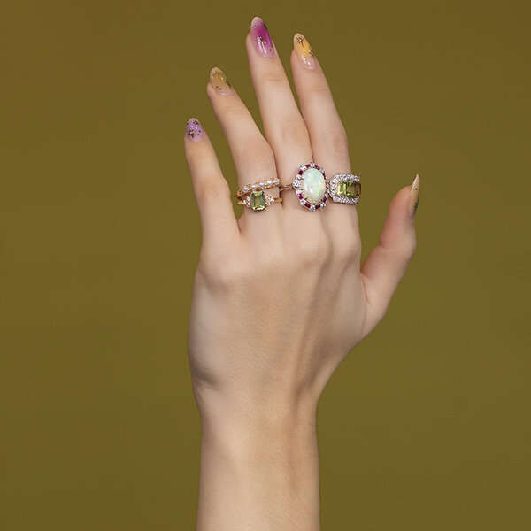 | Steensoort: | Peridoot 7 x 5 mm en Diamant 6x 0.01 ct. (0.06 ctw.) |