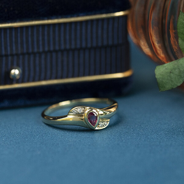 Steensoort: | Synthetische robijn 5.2 x 2.8 mm en Diamant 4x 0.005 ct. H/SI2 |
