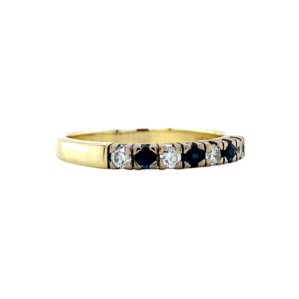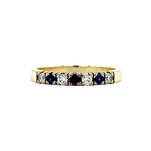 | Steensoort: | Synthetische saffier 3x 2.4 mm en Diamant 4x 0.05 ct. RBC G/VS |