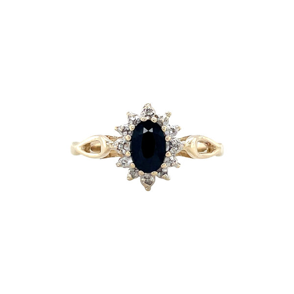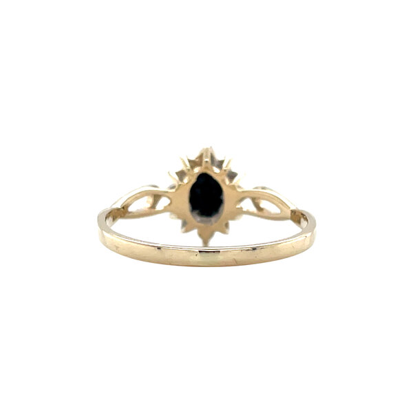 | Steensoort: | Natuurlijke saffier 6.2 x 4.1 mm en Diamant 12x 0.001 ct. G/SI 8kant geslepen |