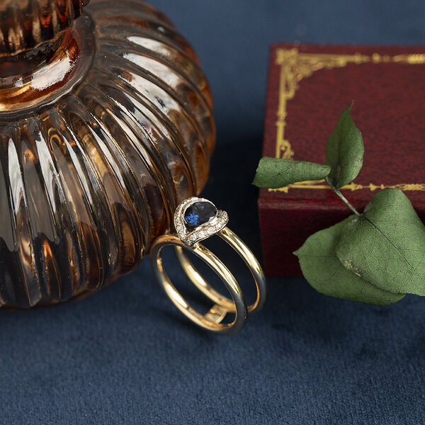 Steensoort: | Natuurlijke saffier 5.6 mm en Diamant 17x 0.005 ct. G/SI (0.085 ctw.) |