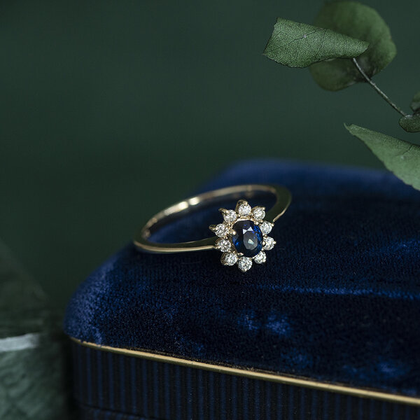 | Steensoort: | Saffier 4.9 x 4 mm en Diamant 0.173 ctw. |