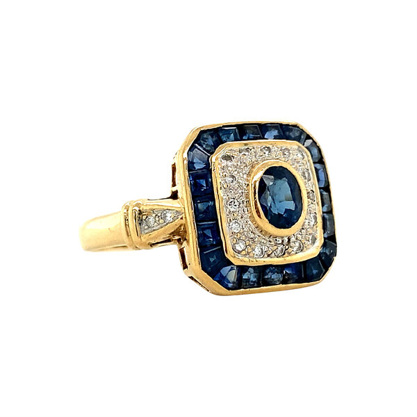 Gouden ring met saffier en diamant 18 krt