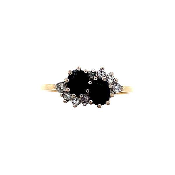 | Steensoort: | Natuurlijke saffier 2x 4.8 x 4.1 mm en Diamant 2x 0.02 ct. en 6x 0.01 ct. 8kant geslepen |