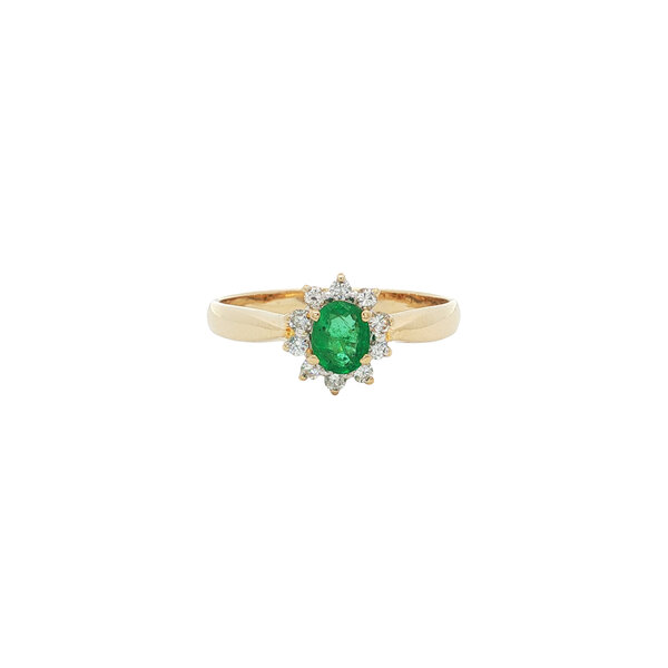 | Steensoort: | Natuurlijke smaragd 4.9 x 4 mm en Diamant 10x 0.015 ct. G/SI (0.15 ctw.) |