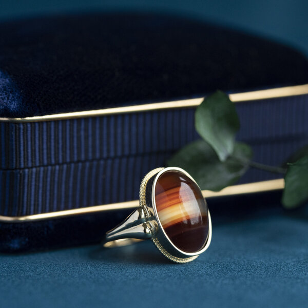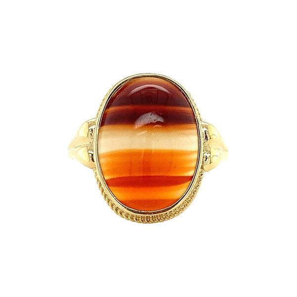 Gouden ring met streepagaat 14 krt