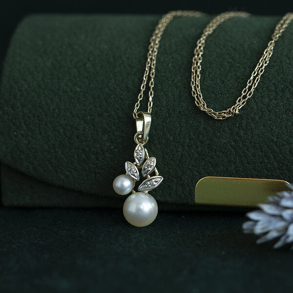 | Steensoort: | Parel 1x 7 mm en 1x 4 mm en Diamant 6x 0.01 ct. 8kant geslepen G/SI |