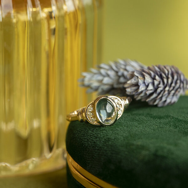 Steensoort: swiss topaas 8 x 6 mm en Diamant 6x 0.02 ct. briljant geslepen G-SI