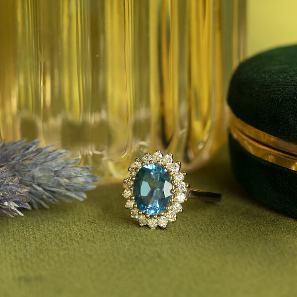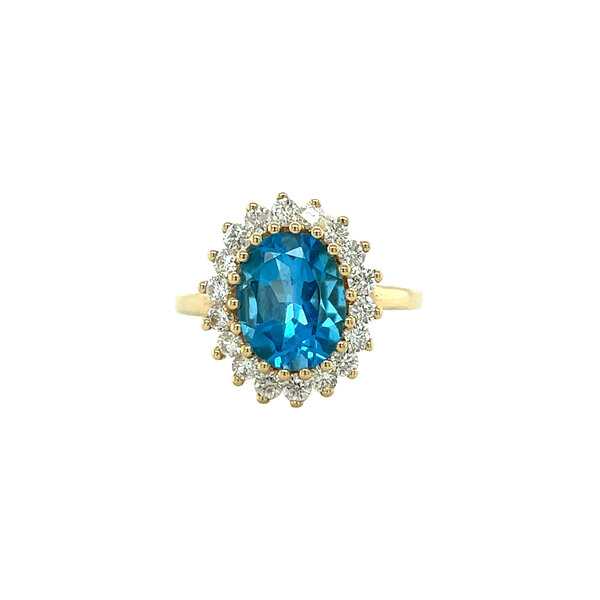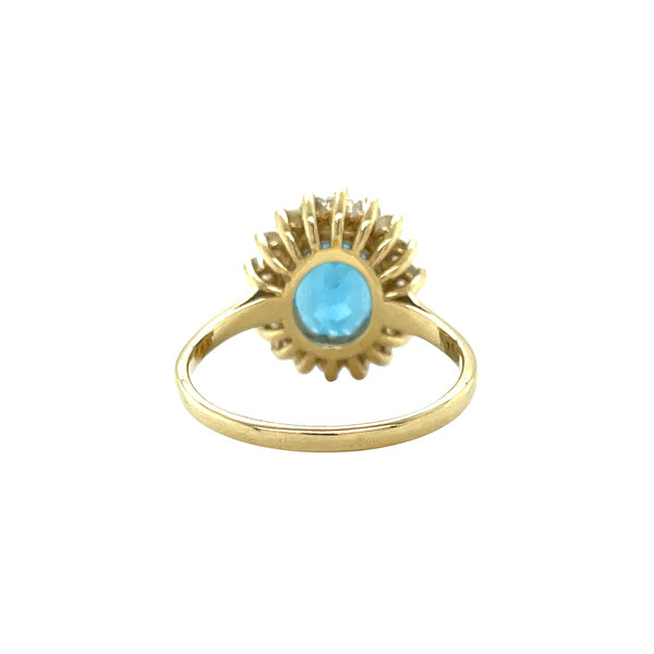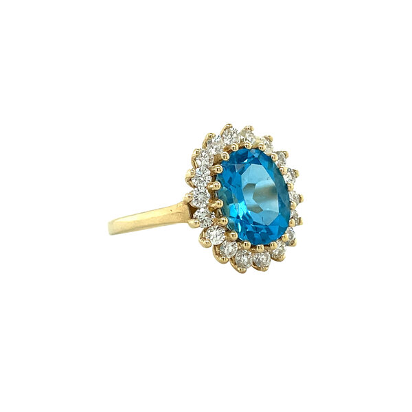 Steensoort: Swiss topaas 9 x 7 mm en Diamant 18x 0.02 ct. briljant geslepen G-SI