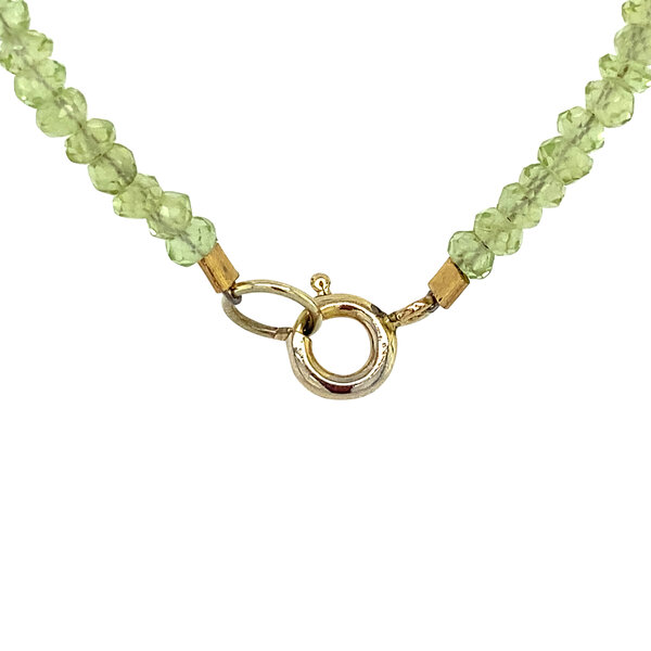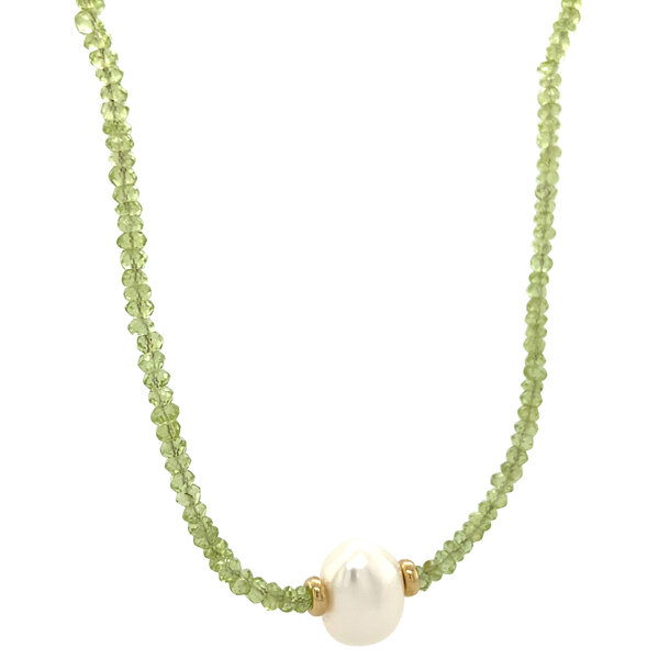Peridoot collier met parel en gouden sluiting 39.5 cm 14 krt