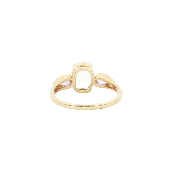 | Steensoort: | Groene amethist 8 x 6 mm en Roze amethist 2x 5 x 3 mm |