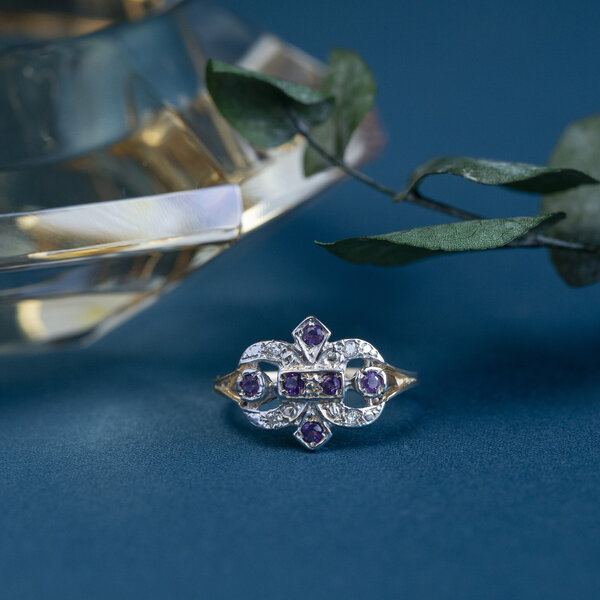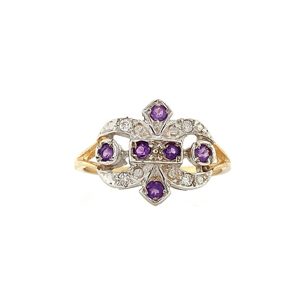 Ring met amethist en diamant 9 krt