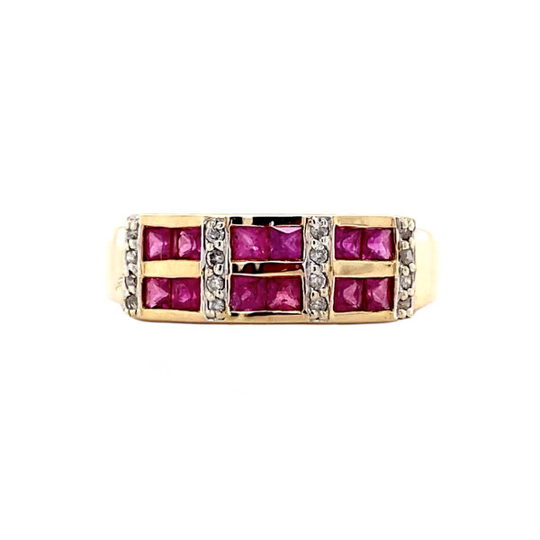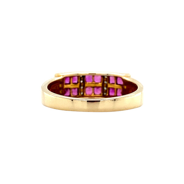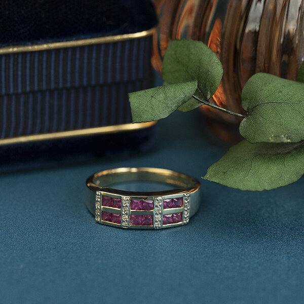 | Steensoort: | Synthetische robijn 12x 2 x 2 mm en Diamant 16x 0.005 ct. G/SI2 RBC |