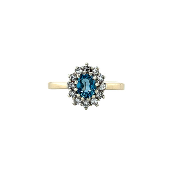 | Steensoort: | Blauwe topaas 5.3 x 4.2 mm en Diamant 12x 0.015 ct. 8kant geslepen G/SI |