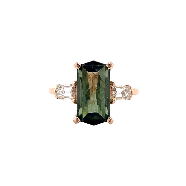 | Steensoort: | Toermalijn 12.3 x 6.4 mm en Diamant 2x 0.25 ct. I/VS-VVS1 (0.5 ctw.) |