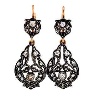 Elegante vormen als bloemen en druppels maken oorbellen zijn de perfecte manier om een verfijnde look van kleur in elke outfit of gelegenheid te realiseren. Kies uit de meest schitterende en intens gekleurde stenen. Antieke oorbellen zijn veelal gemaakt in het begin van de vorige eeuw in de art deco, jugendstil en art nouveau periode. Daarnaast hebben we onder anderen hangers in jaren 40 en jaren 50 stijl.