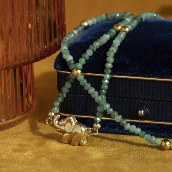 Smaragd collier met gouden sluiting 42.5 cm 14 krt