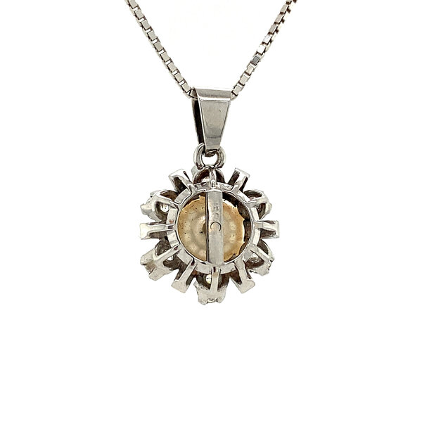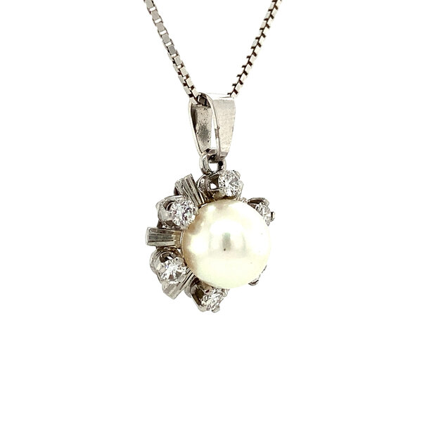 | Steensoort: | Parel 9 mm en Diamant 6x 0.08 ct. briljant geslepen G-SI1 |