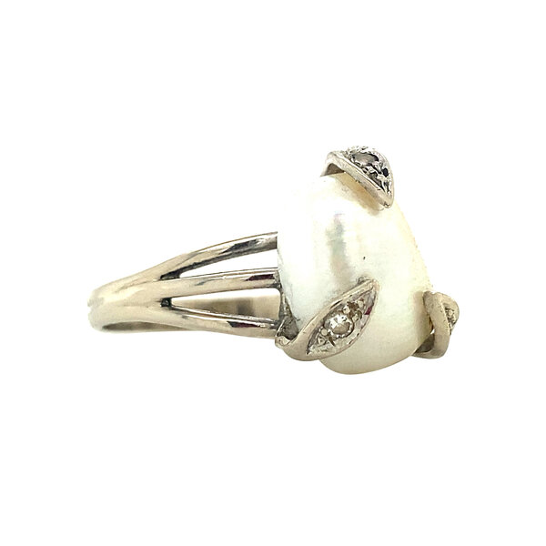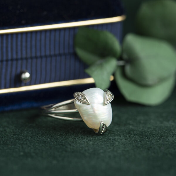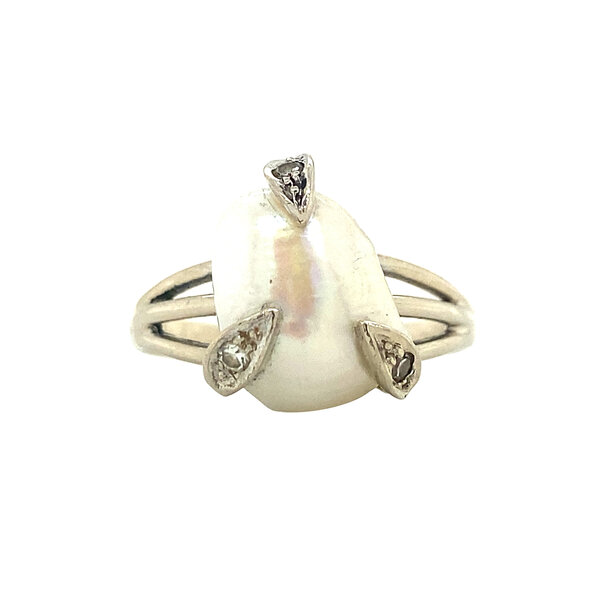 | Steensoort: | Parel 11.9 x 10.5 mm en diamant 3x 0.015 ct. 8kant geslepen I-P1 |