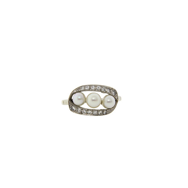 Witgouden ring met parel en diamant 14 krt