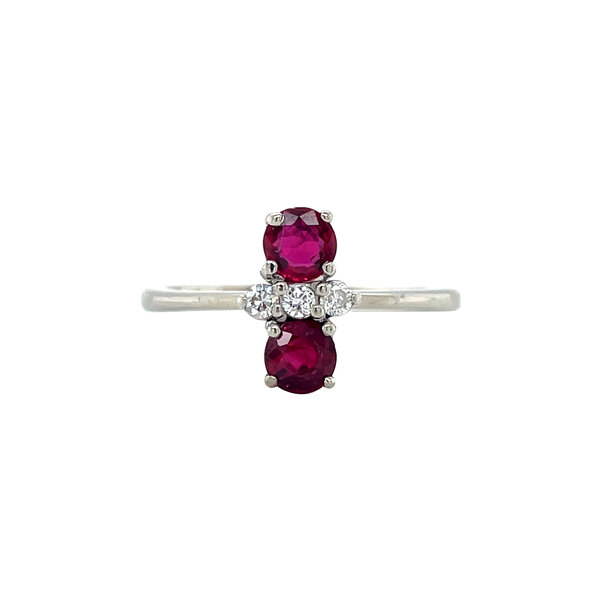 Steensoort: | Synthetische robijn 2x 4 mm en Diamant 3x 0.03 ct. RBC G/SI2 |