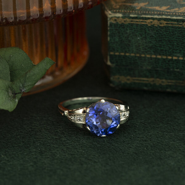 | Steensoort: | Synthetische saffier 10.3 mm en Roosdiamant 4x 1.45 - 1.5 mm G-SI |