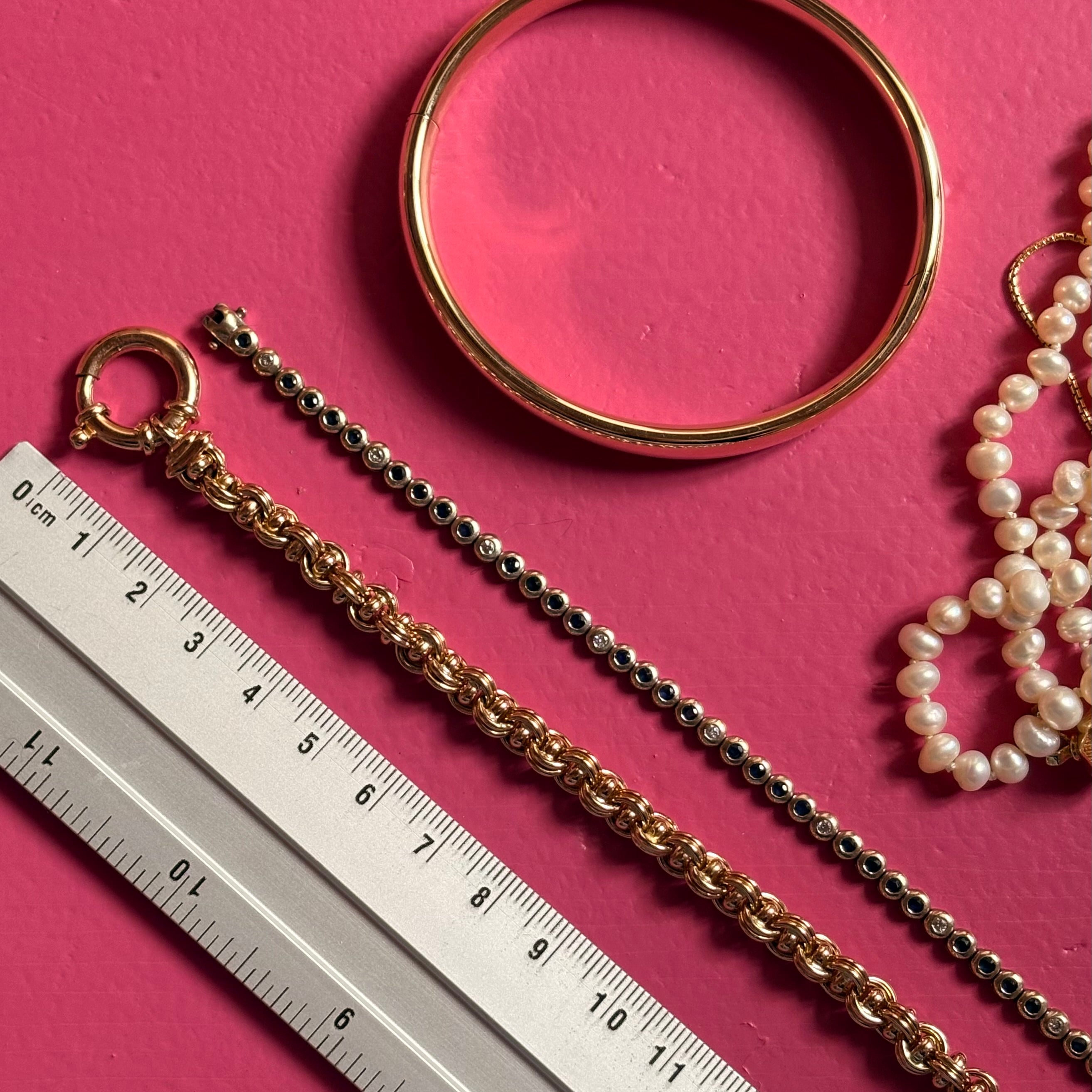De gemeten lengte in centimeters is jouw armbandmaat. Deze maat kun je direct aanhouden bij het kiezen van een vintage armband.